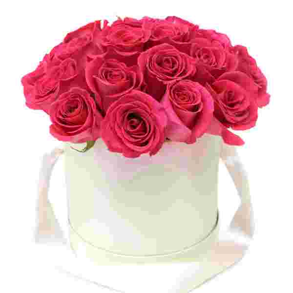 Состав: Роза малиновая элитных сортов 23, тишью, коробка.